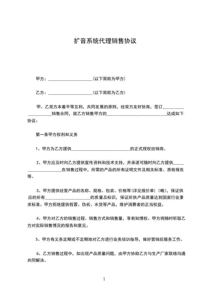 6、本合同一式份,双方各执份,均具同等法律效力。本合同附件为(根据各企业情况不同,自己拟定):《购销商品确认单》、《双方补充约定》。