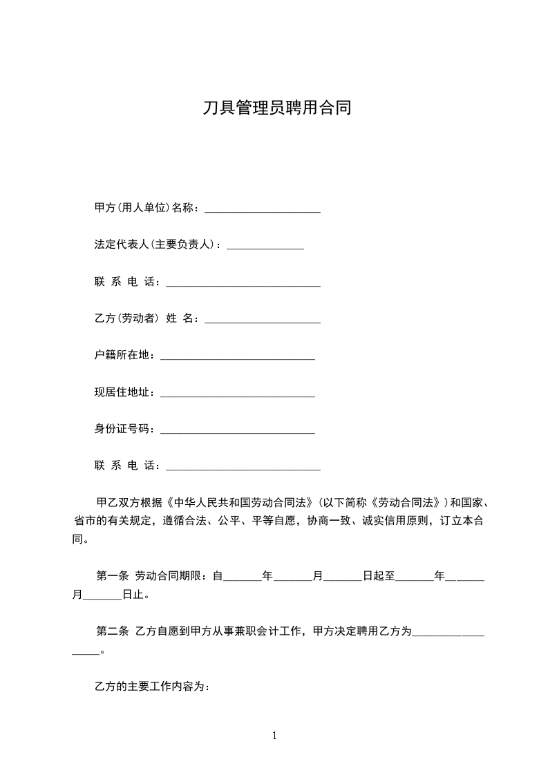 第二条 乙方自愿到甲方从事兼职会计工作,甲方决定聘用乙方为__________________。