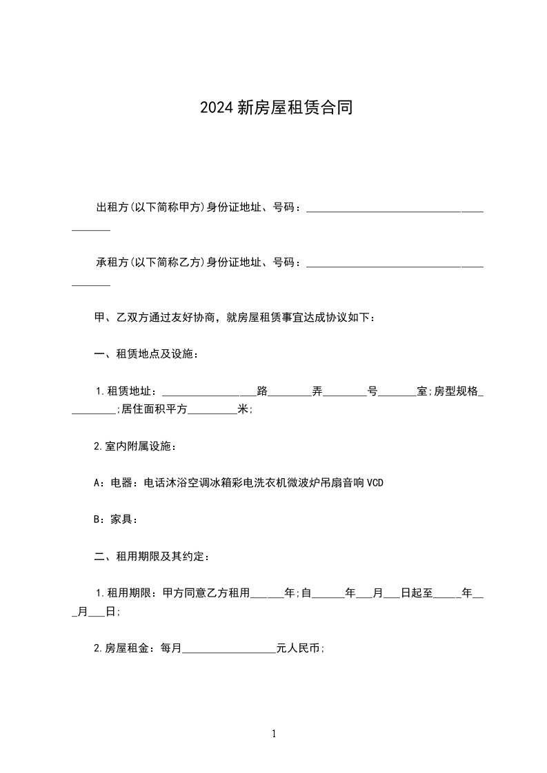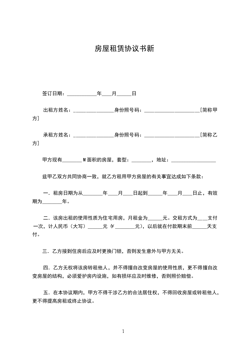 1.租赁地址: 路 弄 号 室;房型规格 ;居住面积平方 米;