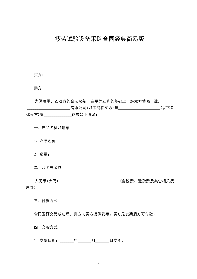 1、交货日期:_______年_______月_______日交货。