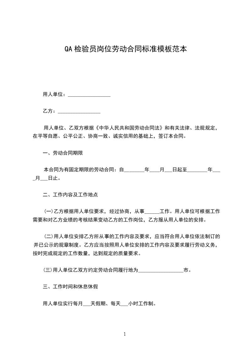 1、固定期限:自______年______月______日起至______年______月______日止。(其中试用期自______年______月______日至______年______月______日止,期限为______个月)。