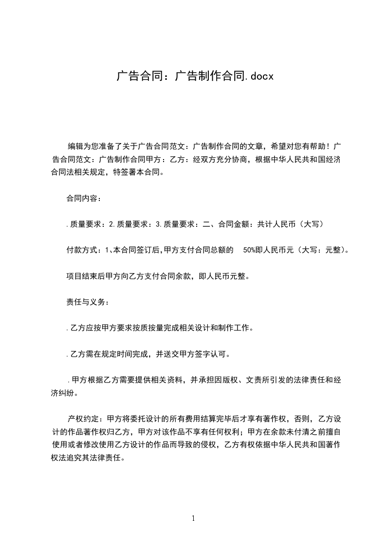 广告制作合同小区广告合同电梯广告租赁合同广告刊登合同