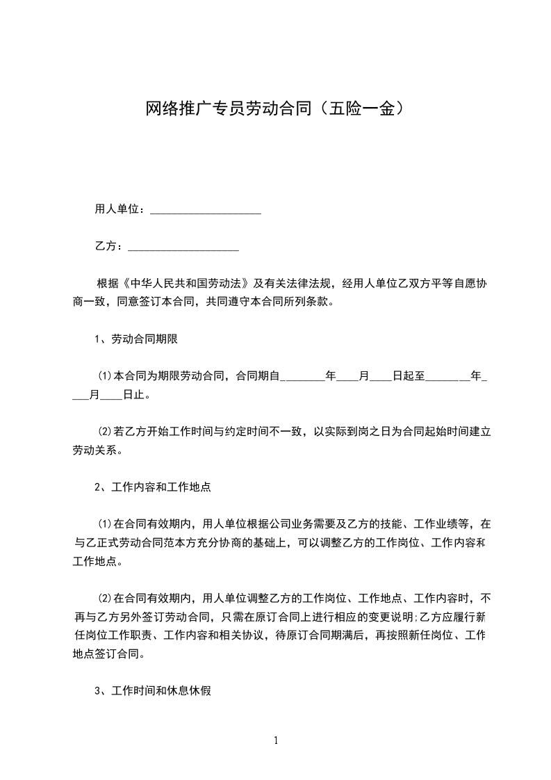 1.乙方的工作内容(岗位或工种)