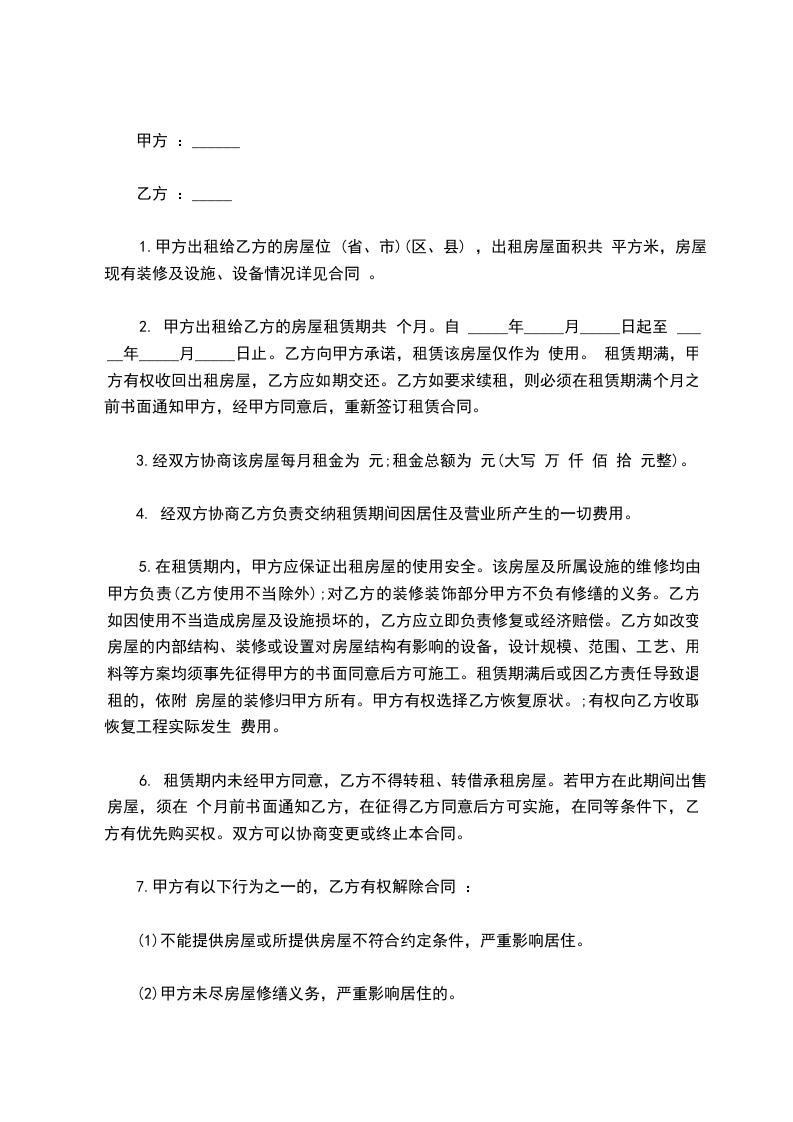 1、乙方正式入住时,应及时的更换房门锁,若发生因门锁问题的意外与甲方无关。