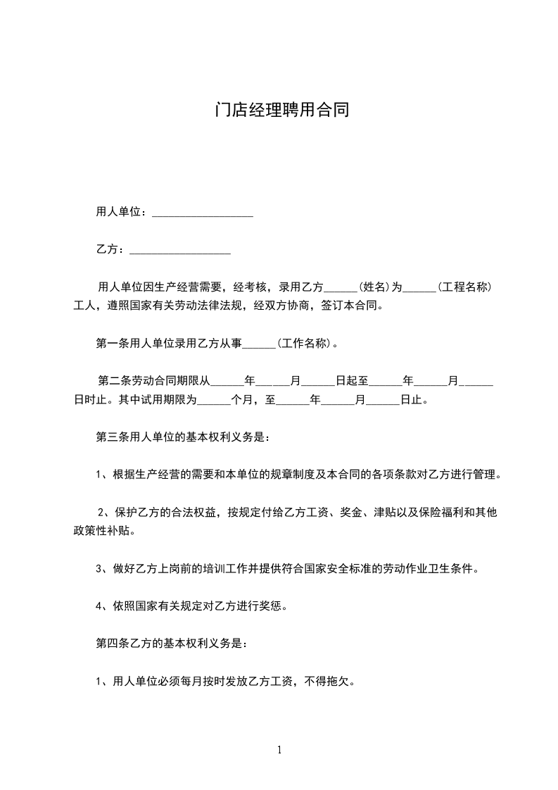 第一条用人单位录用乙方从事______(工作名称)。