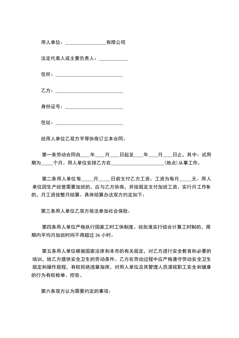 1. 用人单位安排乙方在________________部门________________岗位工作,乙方须根据用人单位公司各项规章制度履行职责。