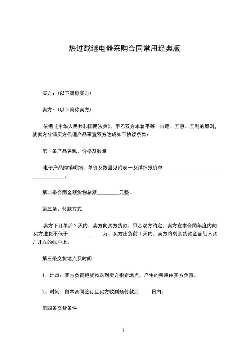 第二条合同金额货物总额_________元整。