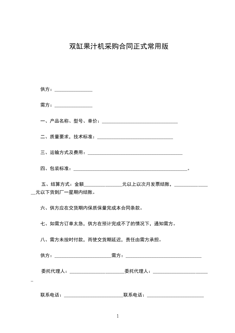 双缸果汁机采购合同正式常用版