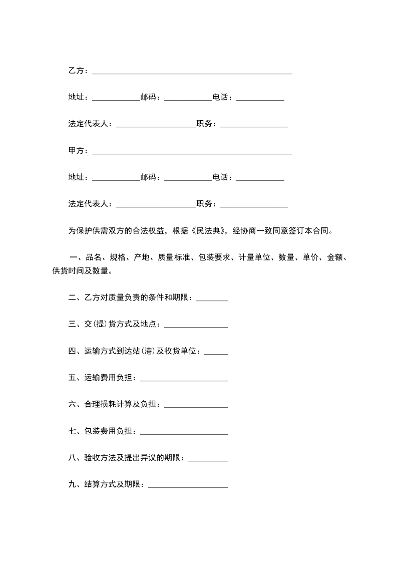 为保护供需双方的合法权益,根据《民法典》,经协商一致同意签订本合同。