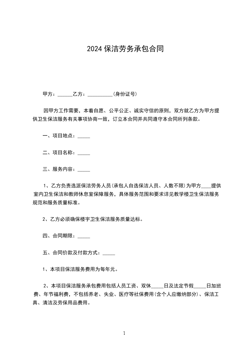 因甲方工作需要,本着自愿、公平公正、诚实守信的原则,双方就乙方为甲方提供卫生保洁服务有关事项协商一致,订立本合同并共同遵守本合同所列条款。