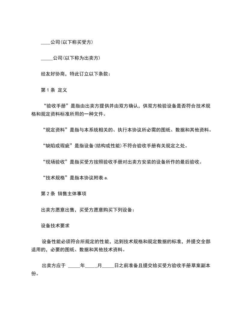 兹就机器买卖事宜,达成如下协议: