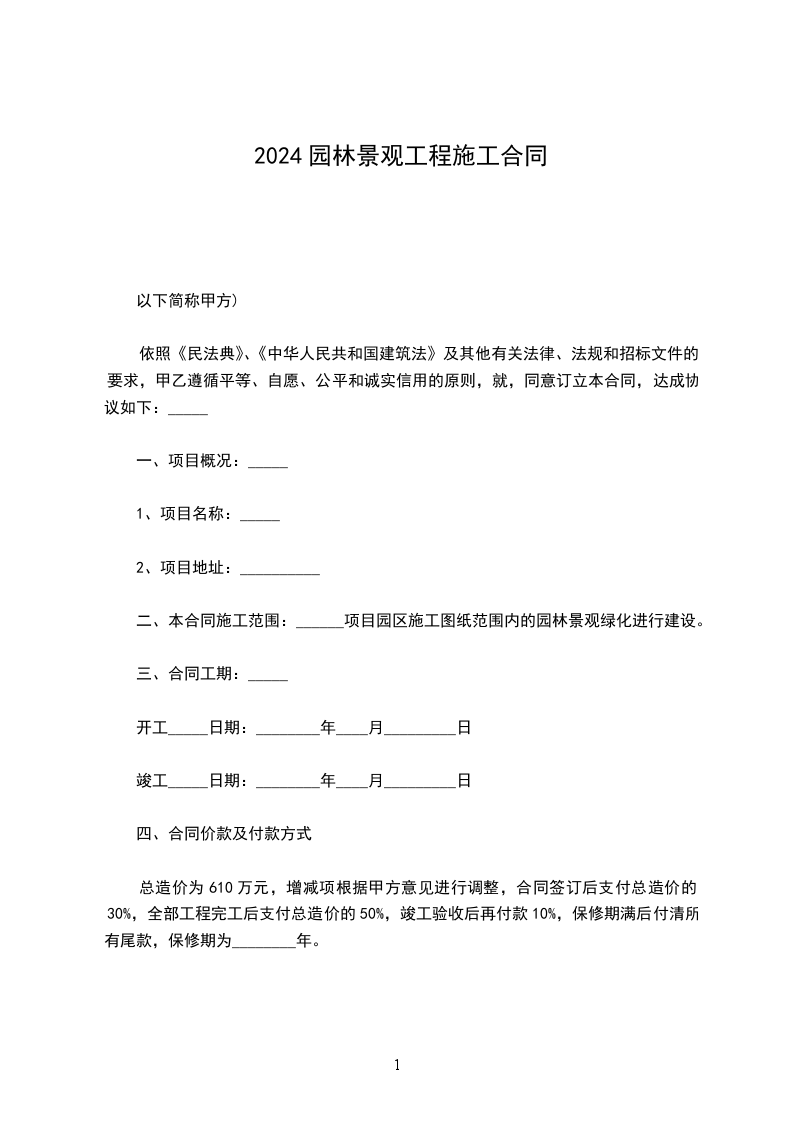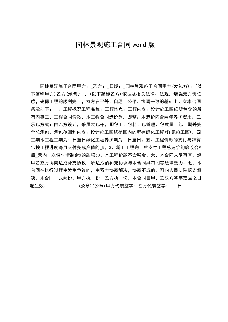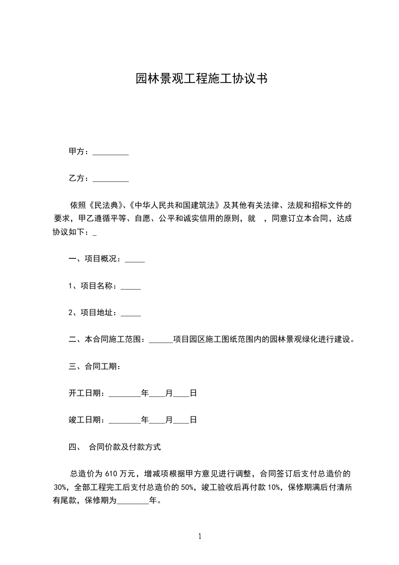 乙方未按合同规定完成工程,且无故拖延时间影响工程进度,每延一_____日,按合同总额的5向甲方支付违约金。