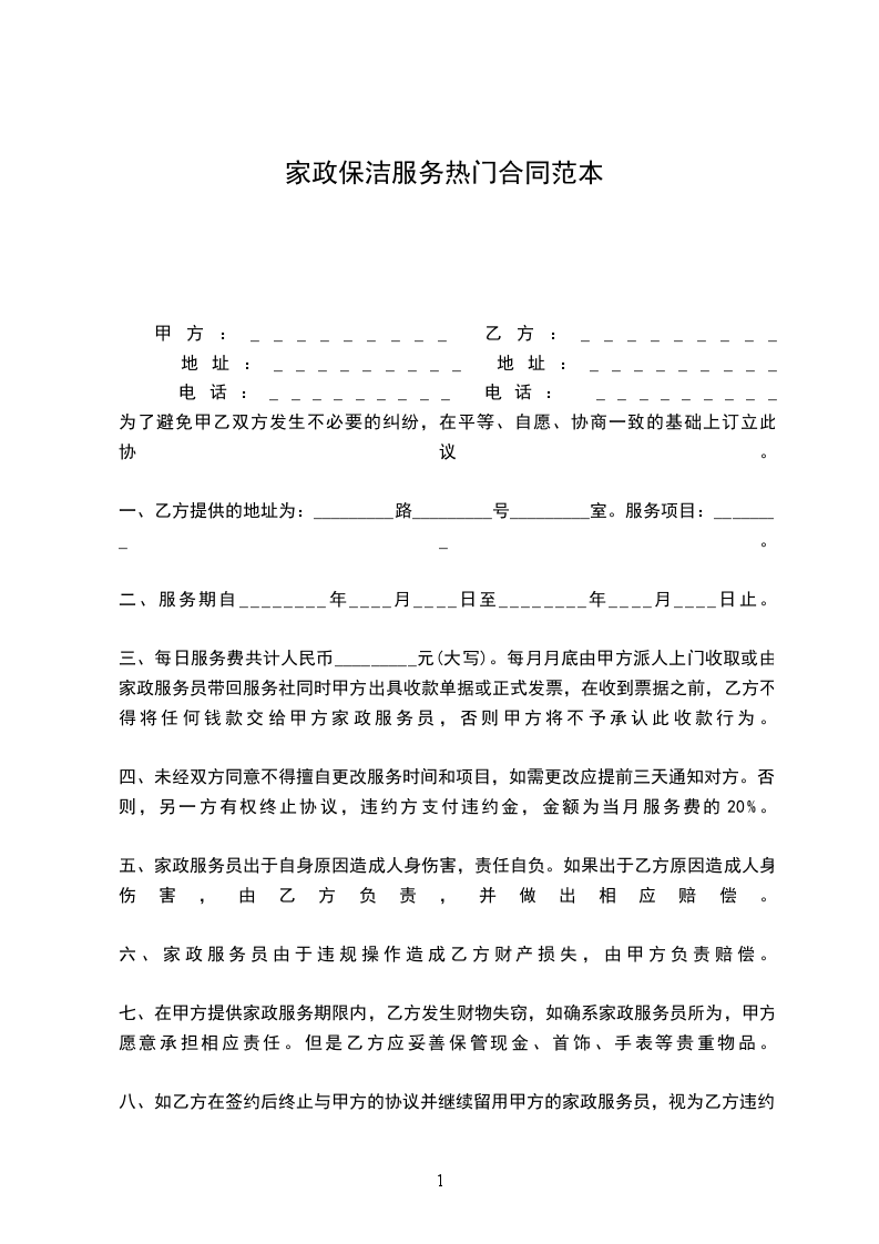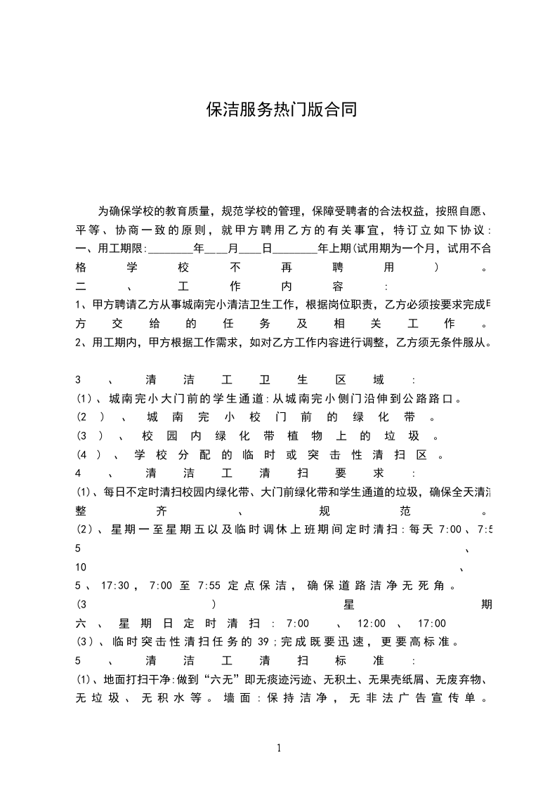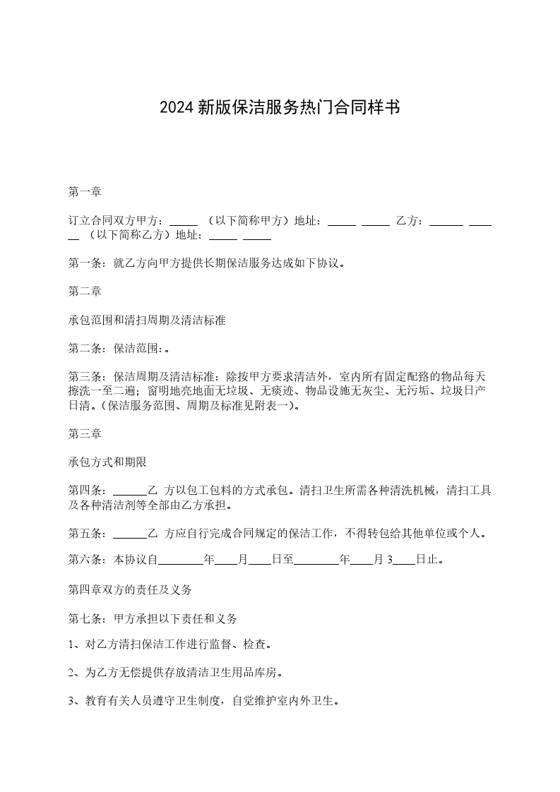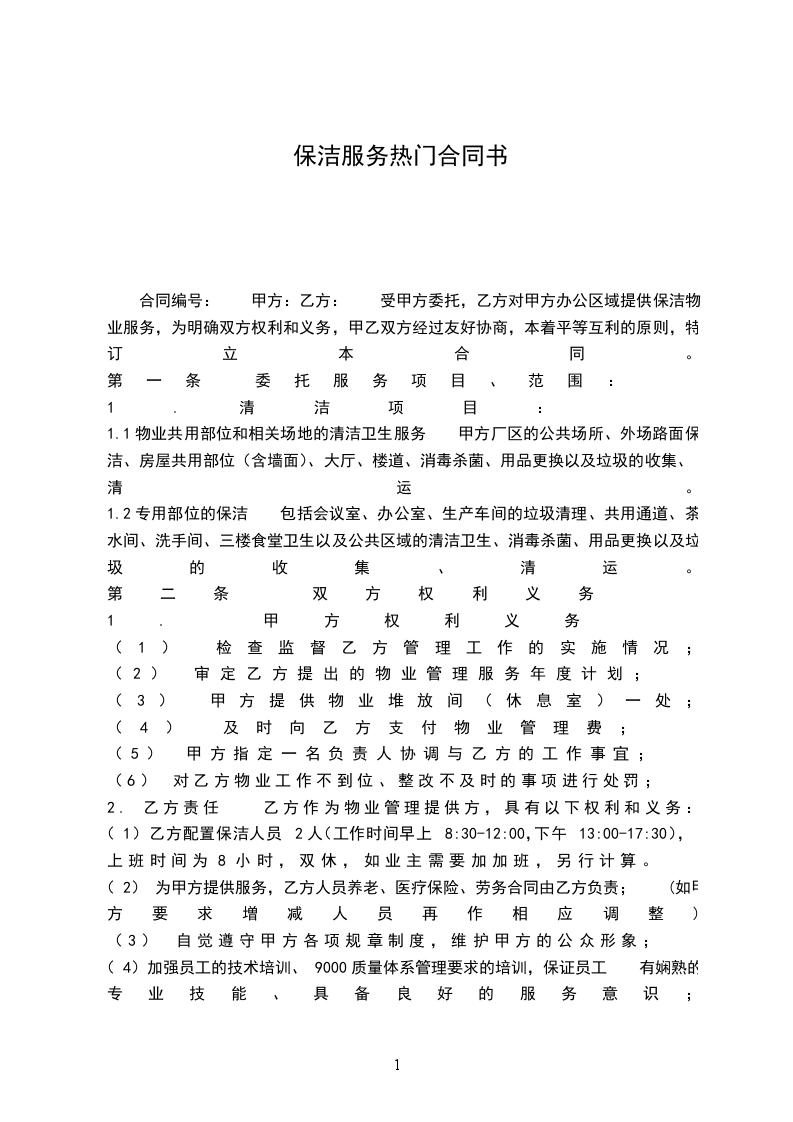 第一条:就乙方向甲方提供长期保洁服务达成如下协议。