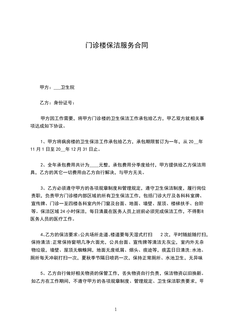 第五条:乙方应自行完成合同规定的保洁工作,不得转包给其他单位或个人。
