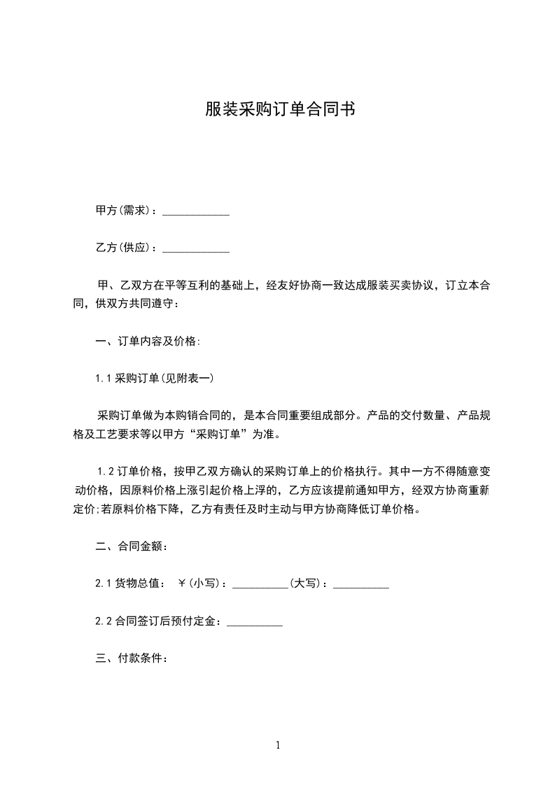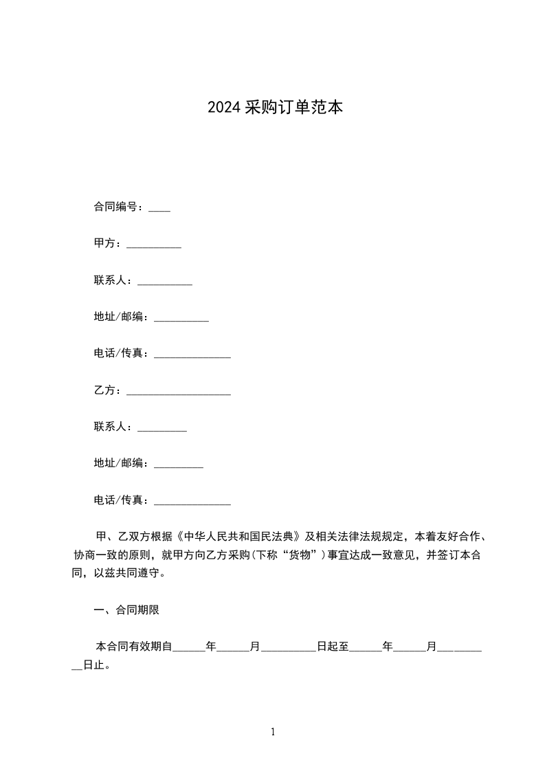 甲方将合同期内以订单(订单格式见一)形式向乙方采购货物。
