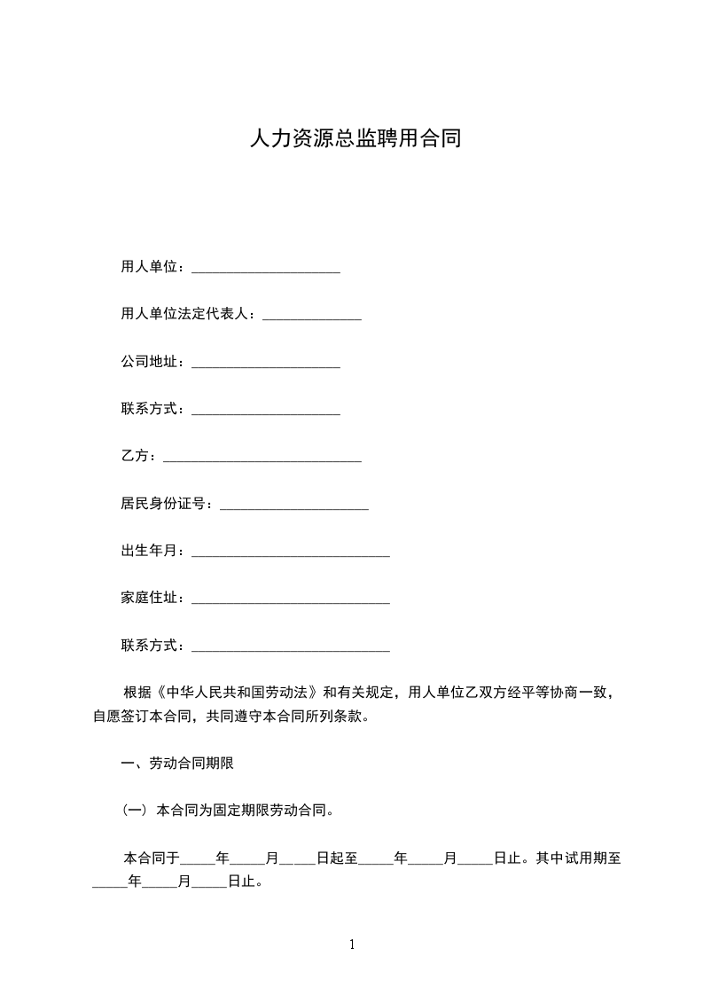 (一) 本合同为固定期限劳动合同。