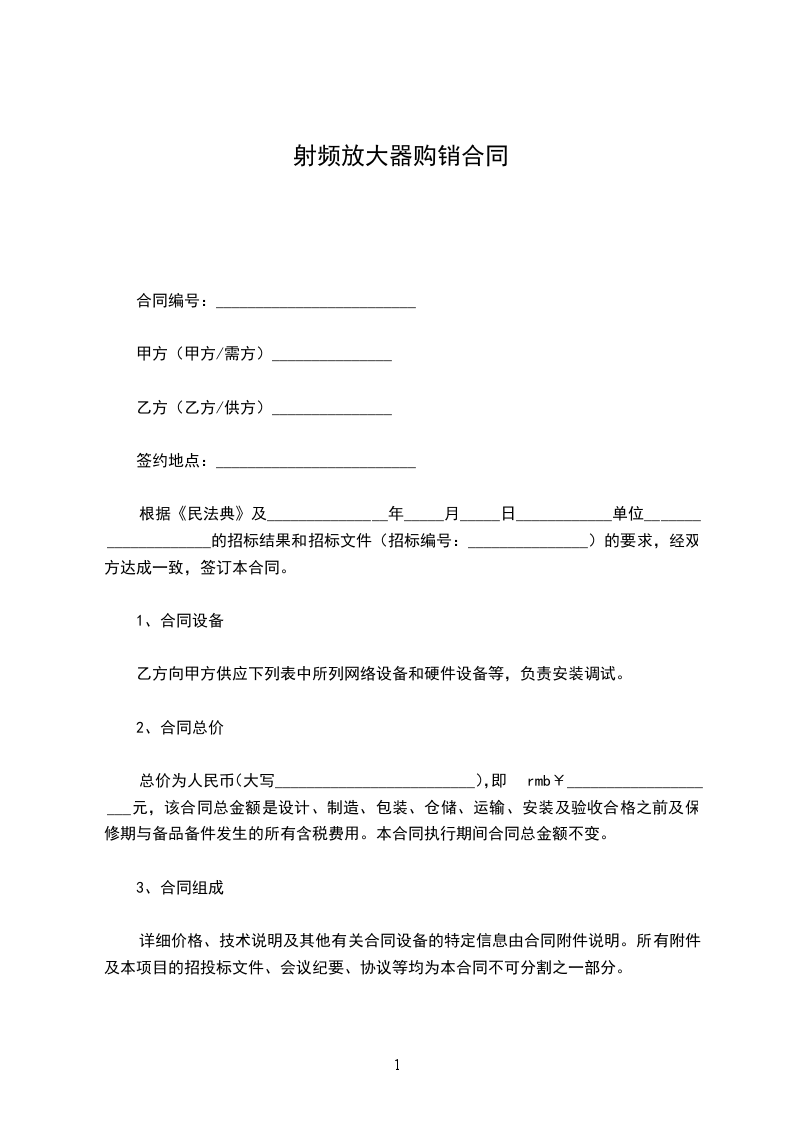 根据《民法典》及_______________年_____月_____日____________单位____________________的招标结果和招标文件(招标编号:_______________)的要求,经双方达成一致,签订本合同。