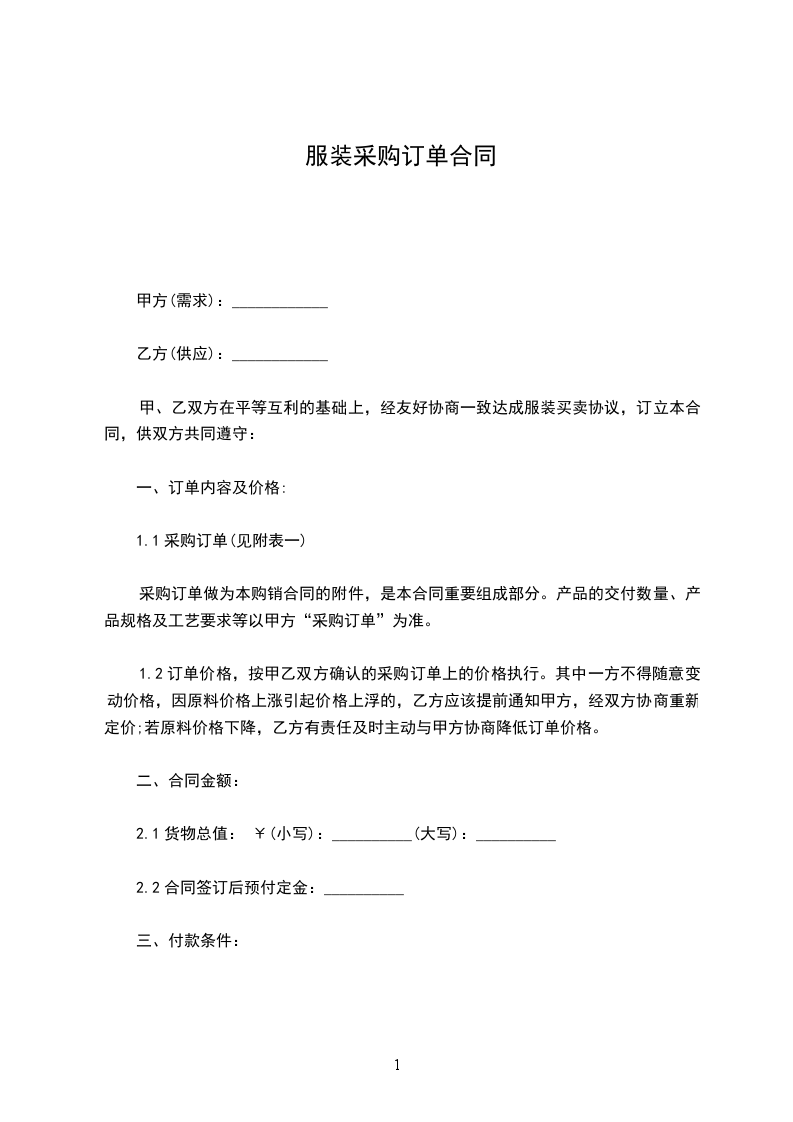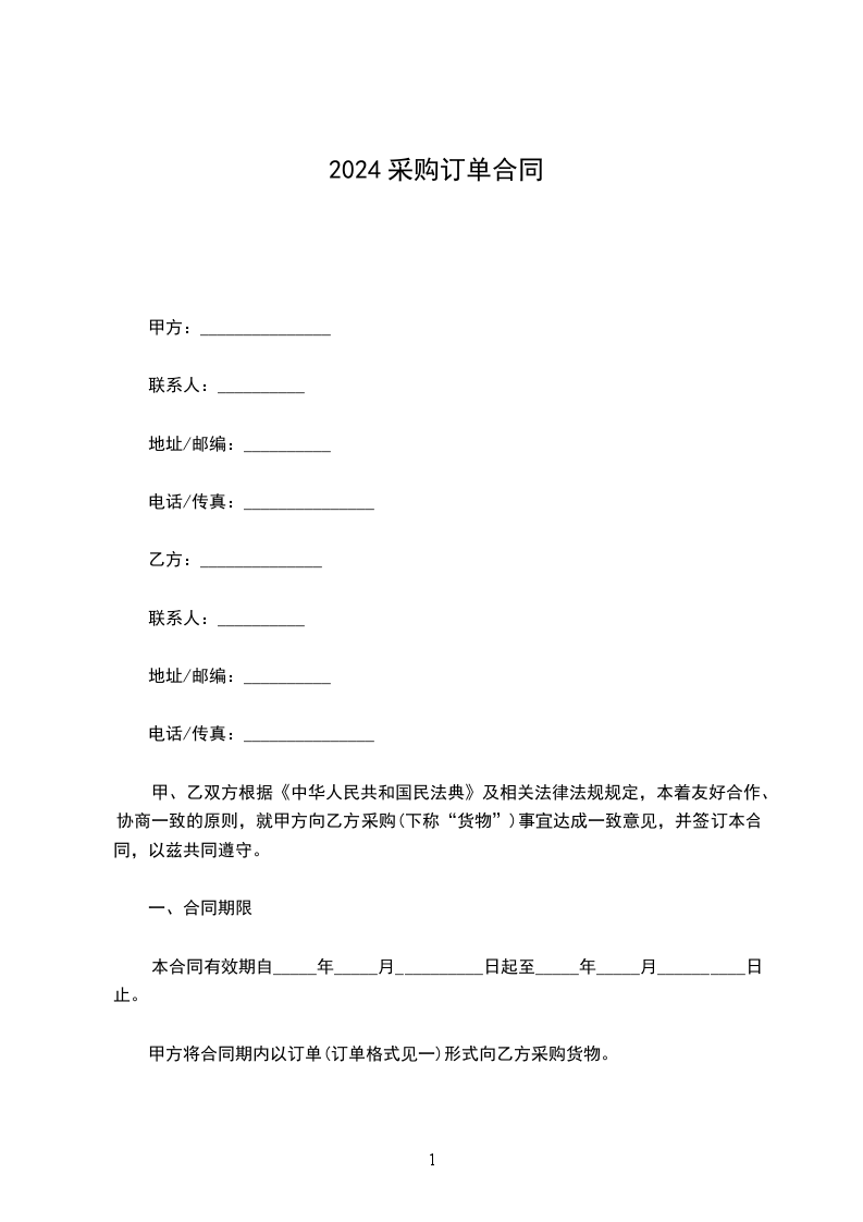 甲方将合同期内以订单(订单格式见一)形式向乙方采购货物。