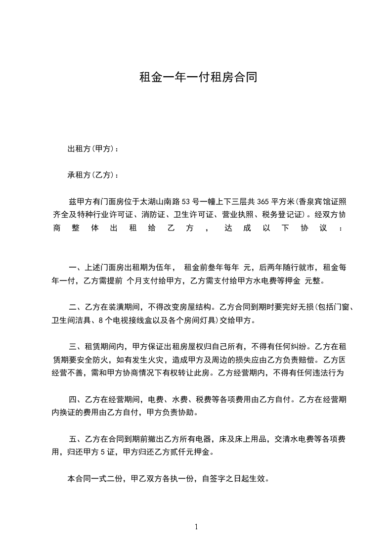 二、租期壹年,从______年___月___日起到______年___月___日为止,必须一次性付清租金后使用。