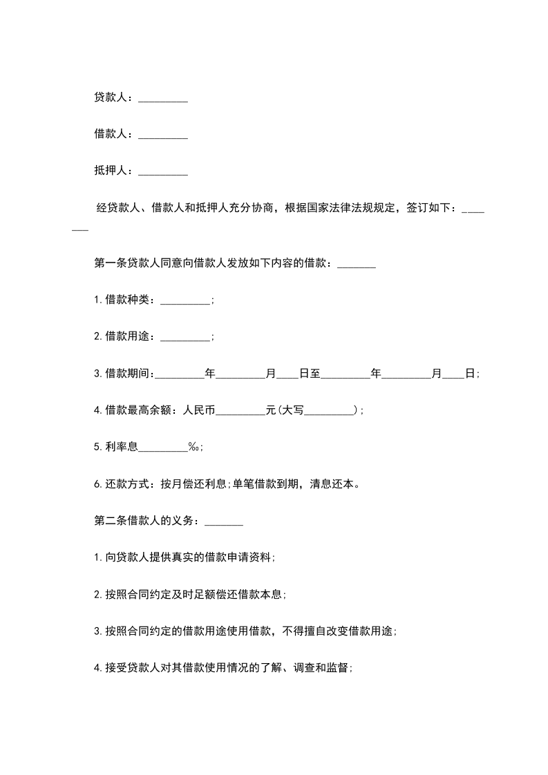 经贷款人、借款人和抵押人充分协商,根据国家法律法规规定,签订如下:_______