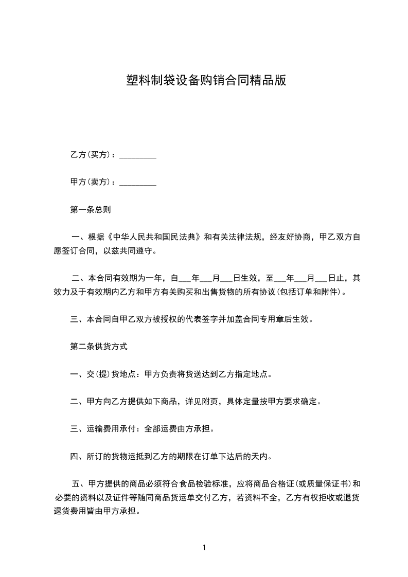 二、本合同有效期为一年,自___年___月___日生效,至___年___月___日止,其效力及于有效期内乙方和甲方有关购买和出售货物的所有协议(包括订单和附件)。