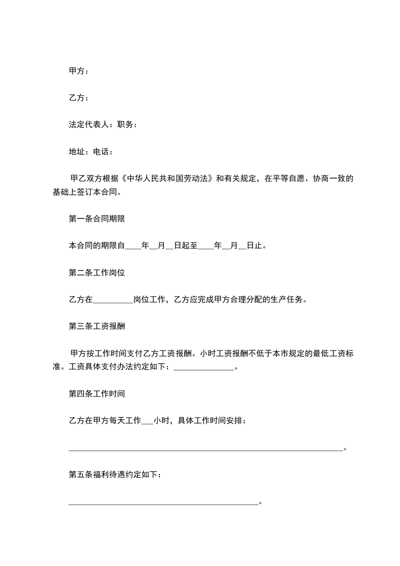 甲乙双方根据《中华人民共和国劳动法》和有关规定,在平等自愿、协商一致的基础上签订本合同。