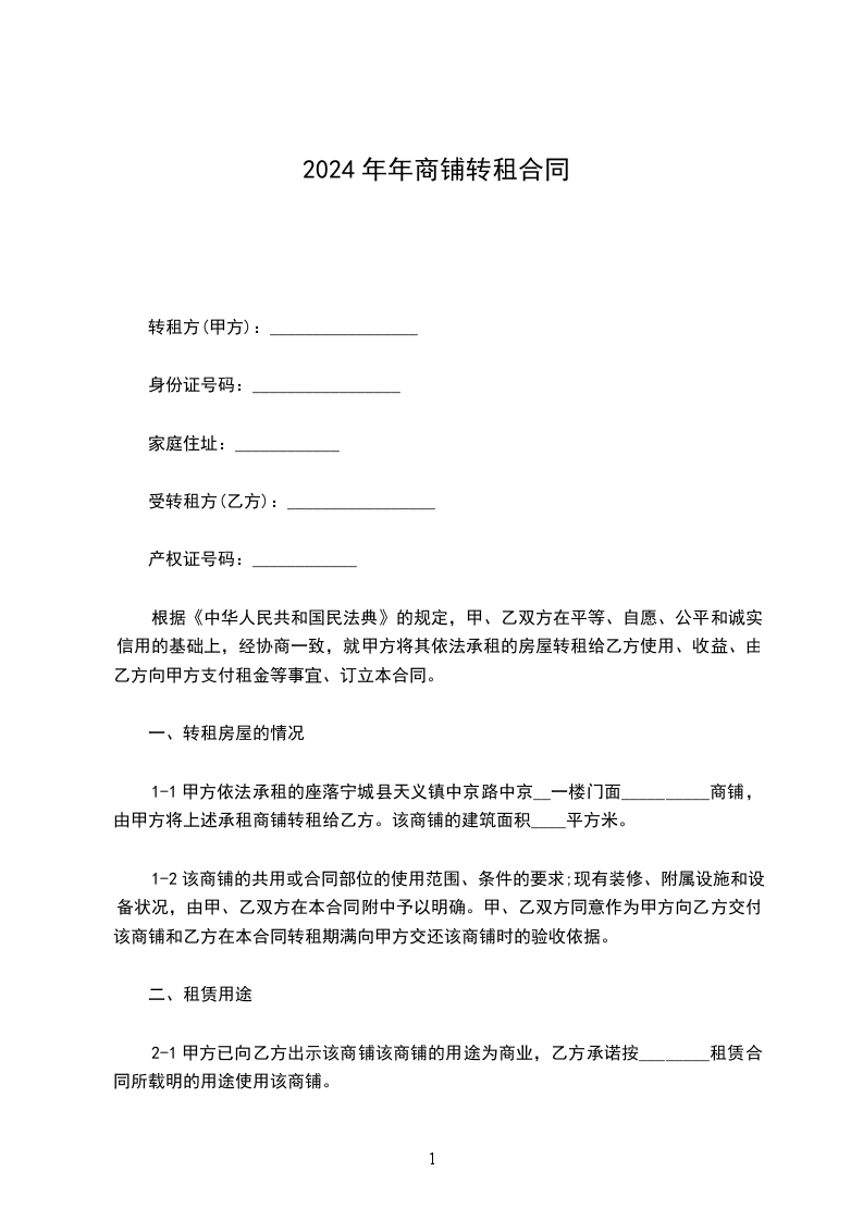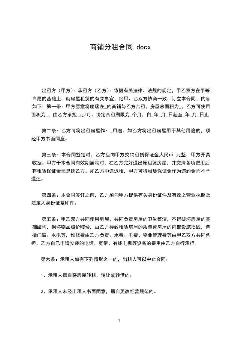 根据《中华人民共和国民法典》的规定,甲、乙双方在平等、自愿、公平和诚实信用的基础上,经协商一致,就乙方分租甲方承租的商铺事宜,订立本合同。结合甲乙双方的实际情况,在双方协商一致的情况下制定,是双方真实意思的表达。