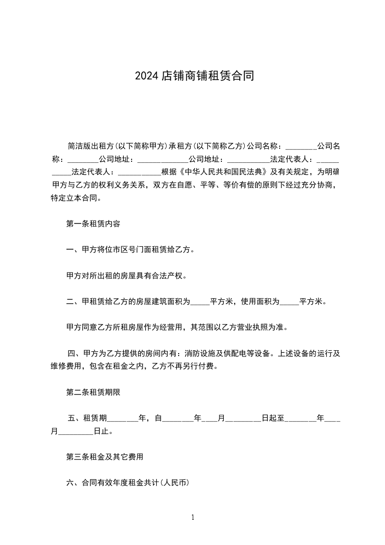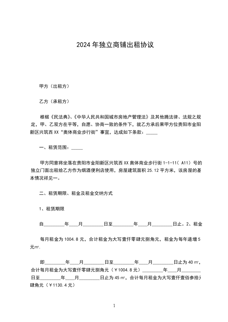 1.1甲方出租给乙方的商铺主要情况如下:_______