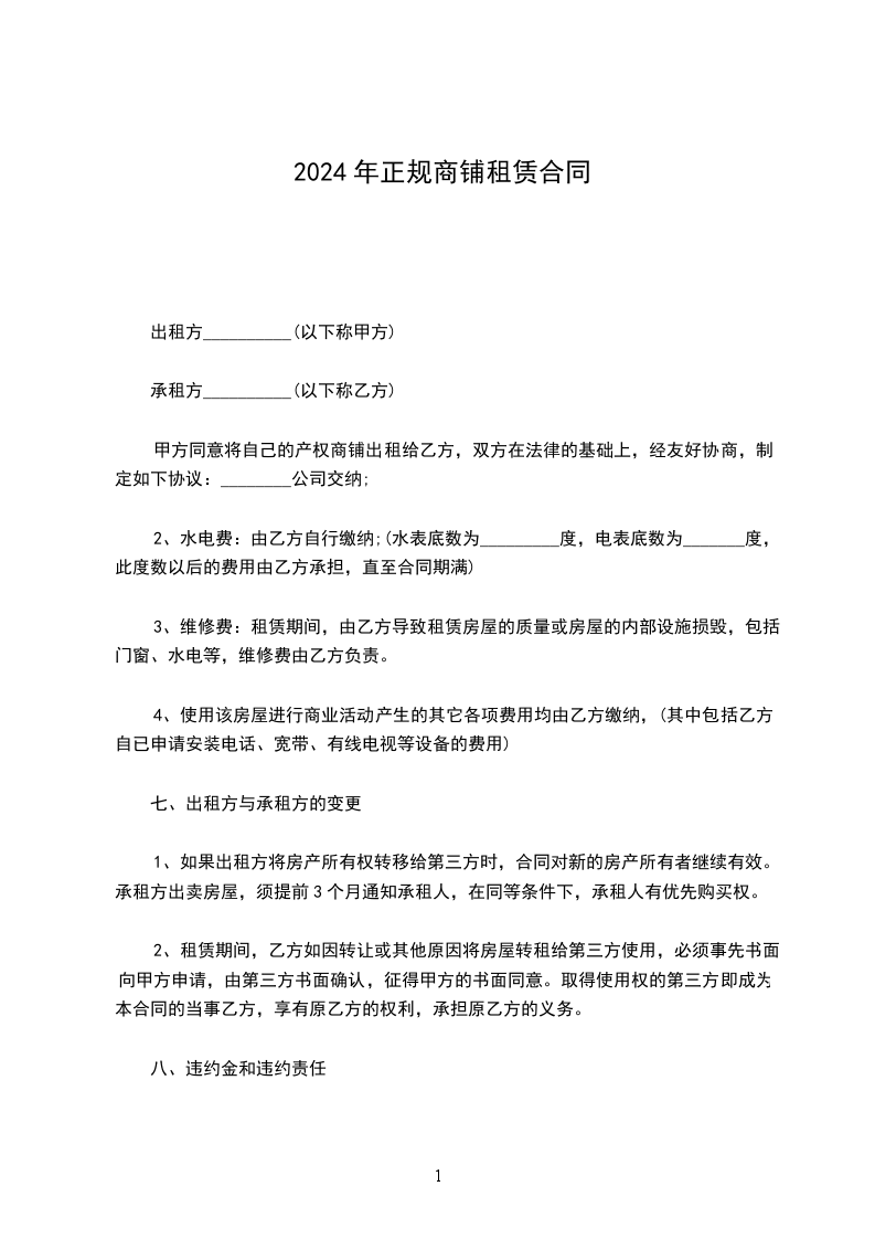 8.3在租赁期内,甲方如与产权所有人变更租赁权,应提前____个月通知乙方。乙方在同等条件下有优先承租权。根据国家法律,甲方与该商铺产权所有人变更本商铺租赁权,本合同继续有效。