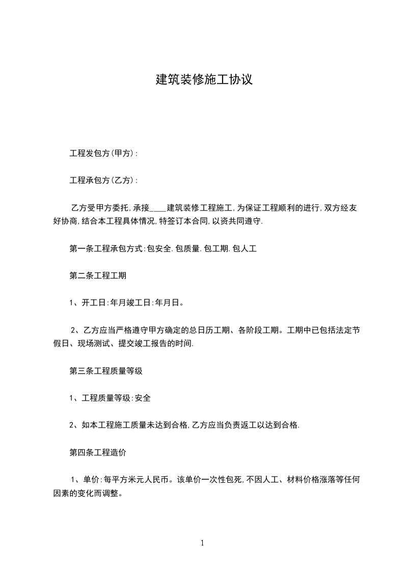 第一条工程承包方式:______包安全.包质量.包工期.包人工