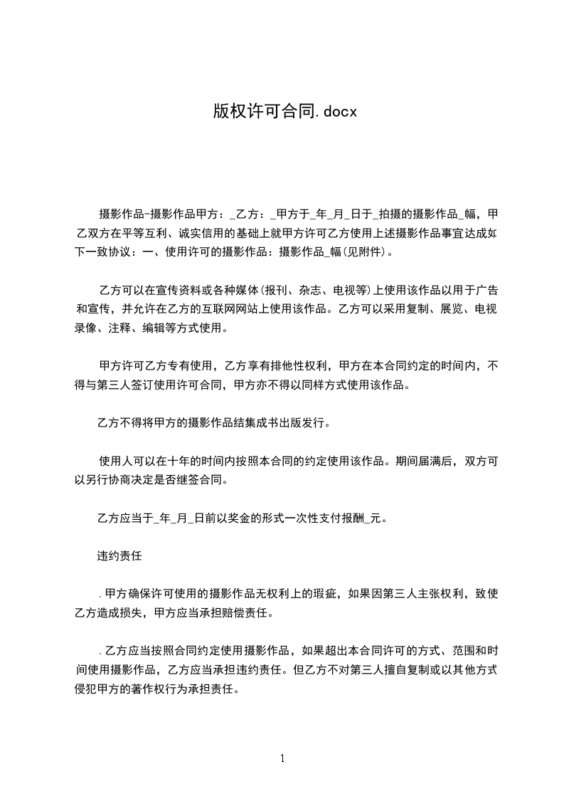 2.5乙方承诺对甲方向乙方提供的图片仅限在《_________》上登载使用,并不向第三方转供图片;