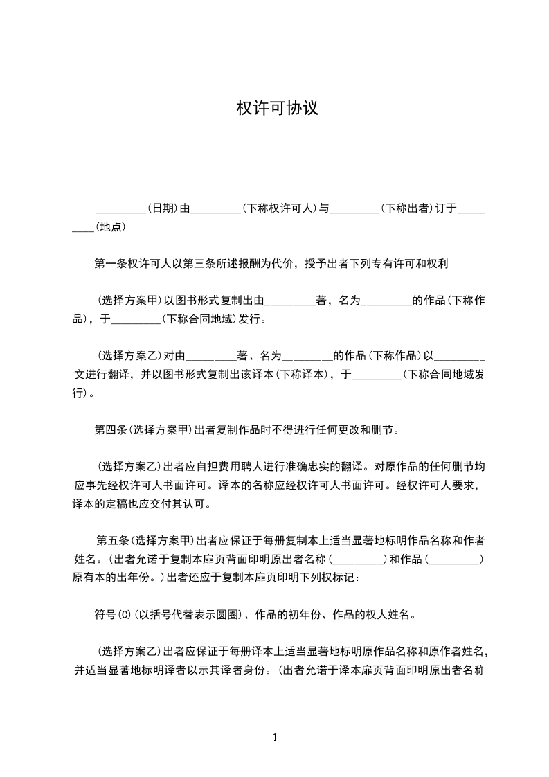 4.1乙方在本协议生效之_____日起_________天内将预付稿费_________元人民币通过以下账户向甲方支付(此费用在双方协议终止时结算)。