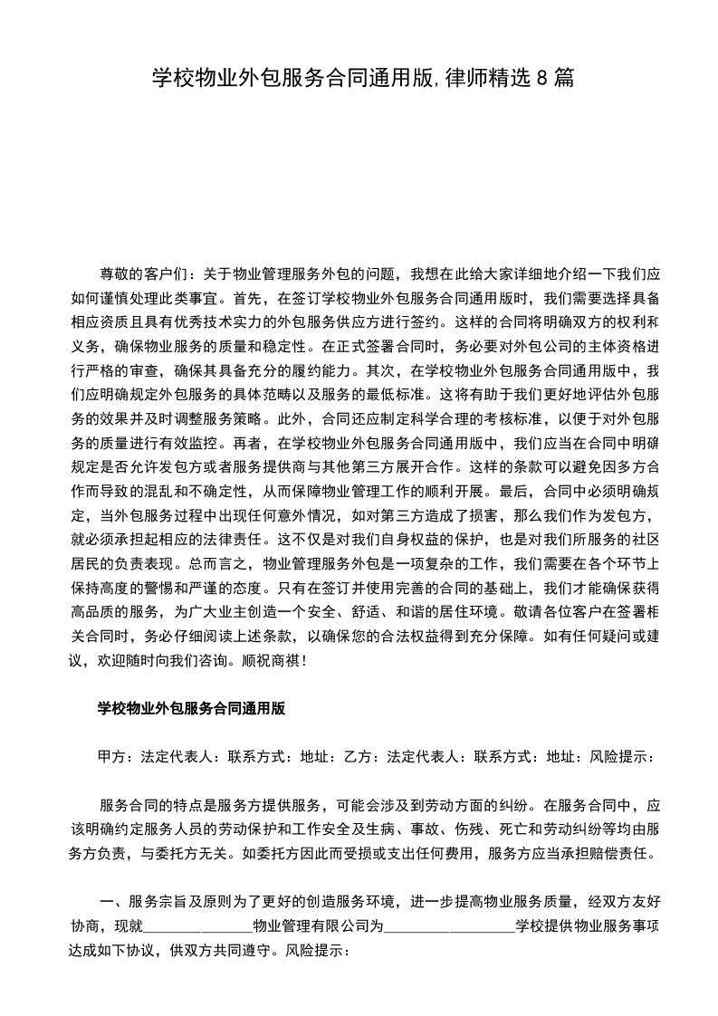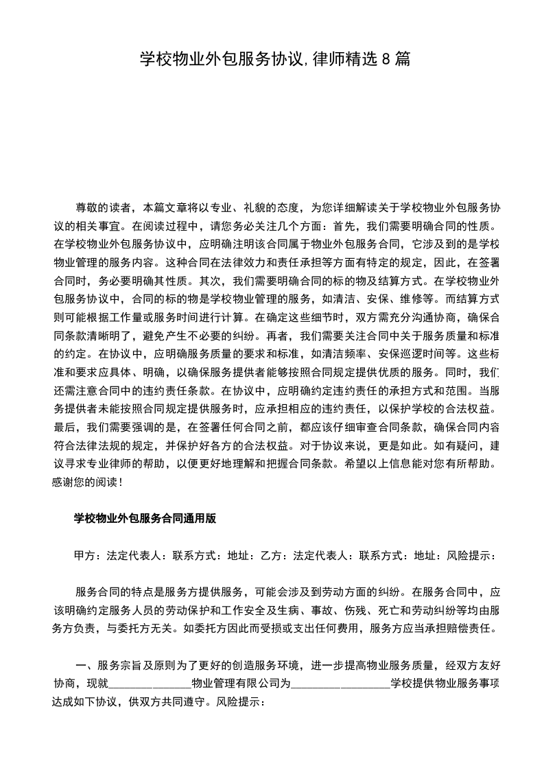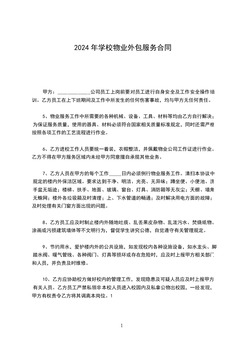 6、乙方进校工作人员要统一着装,衣帽整洁,并佩戴物业公司工作证进行作业。乙方不得在甲方服务区域内未经甲方同意擅自承揽其他业务。