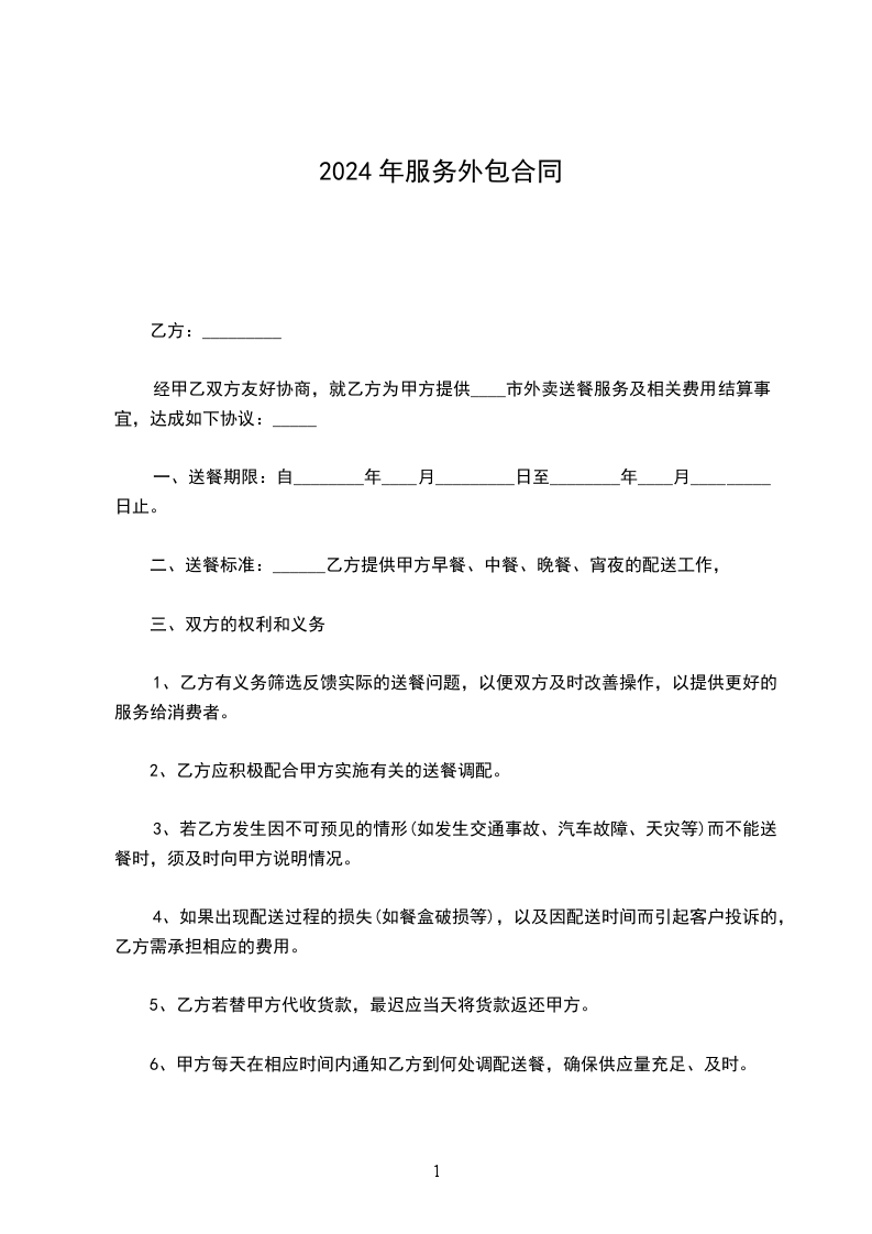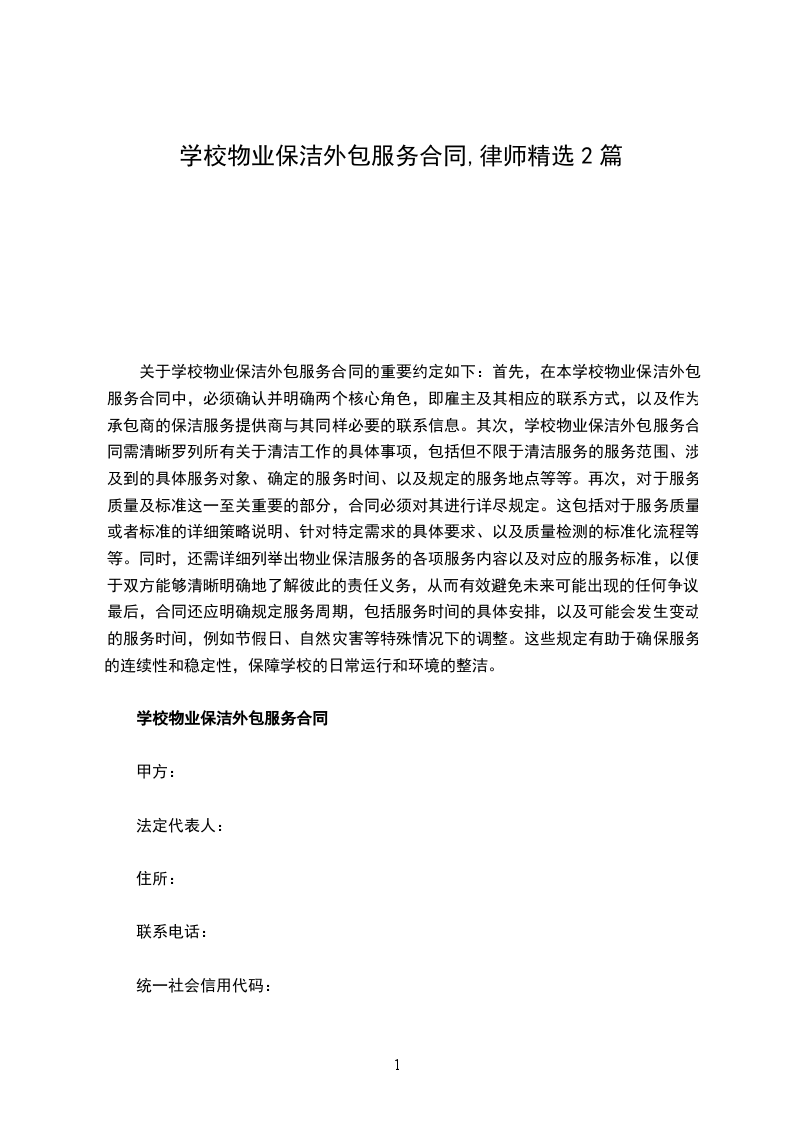 2、如乙方未按合同要求提供优质的保洁服务作业,甲方有权向乙方收取剩余合同款的_____%的违约金,并要求乙方退还当月服务费。