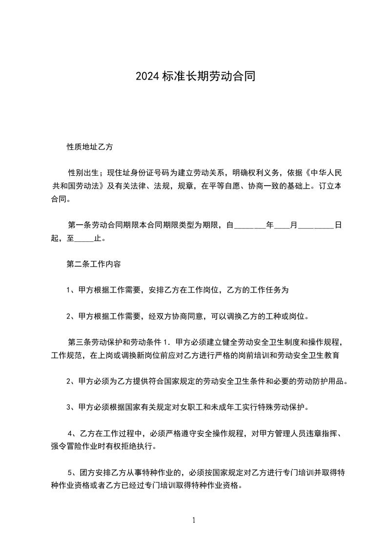 第一条劳动合同期限本合同期限类型为期限,自________年____月_________日起,至_____止。