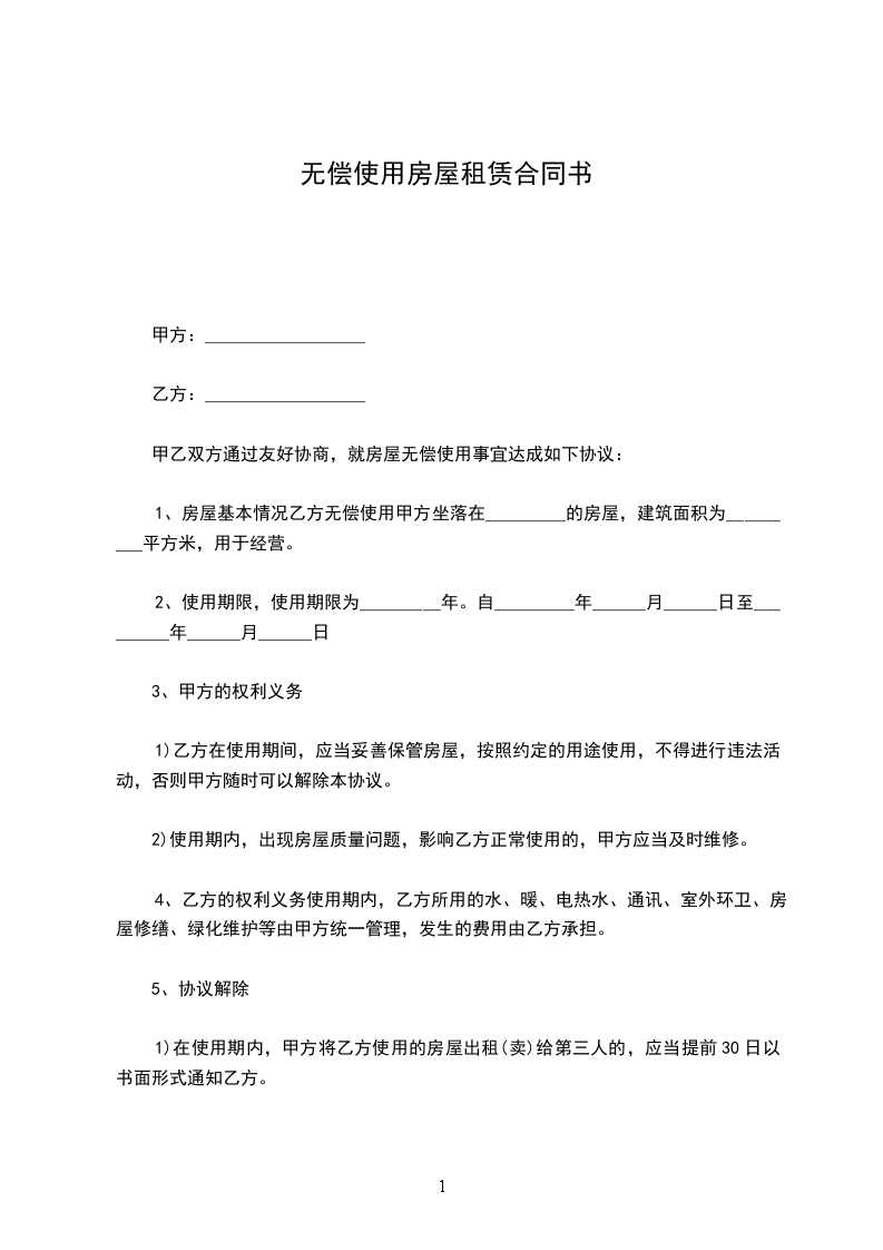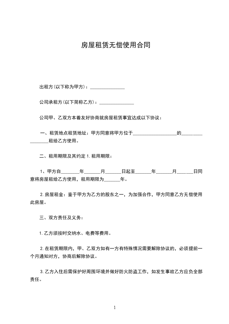 2.房屋租金:鉴于甲方为乙方的股东之一,为加强合作,甲方同意乙方无偿使用此房屋。