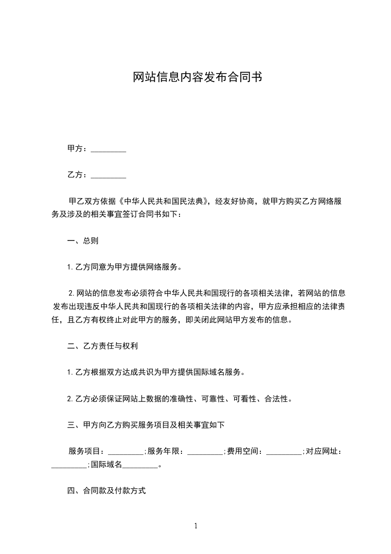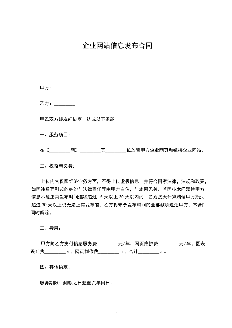 2)如甲方没有自身网站,乙方为甲方提供空间放置关于甲方的_____页内介绍页面(甲方自行设计制作,交由乙方通过后由乙方为甲方放置);