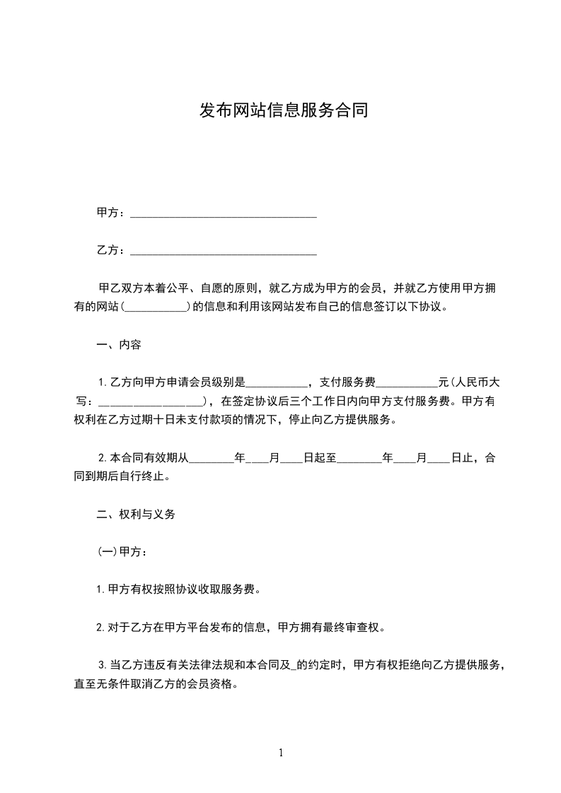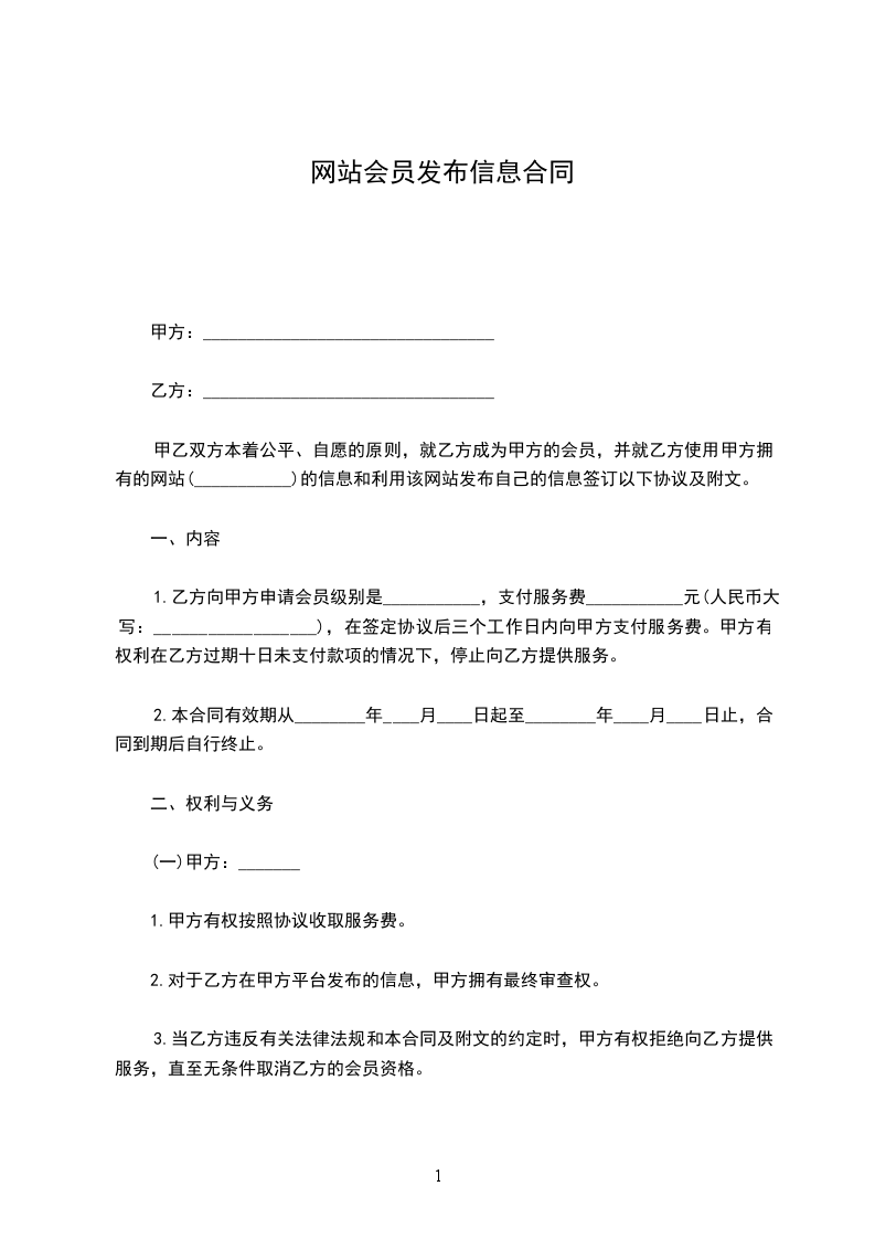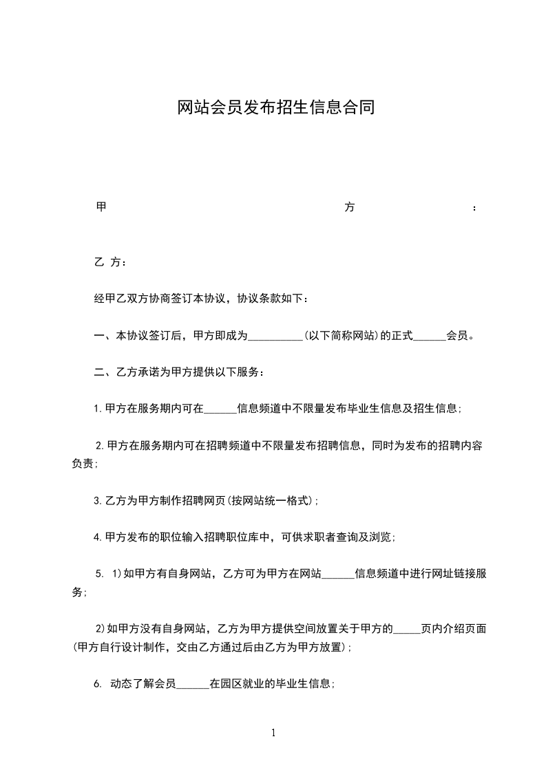 一、本协议签订后,甲方即成为__________(以下简称网站)的正式______会员。