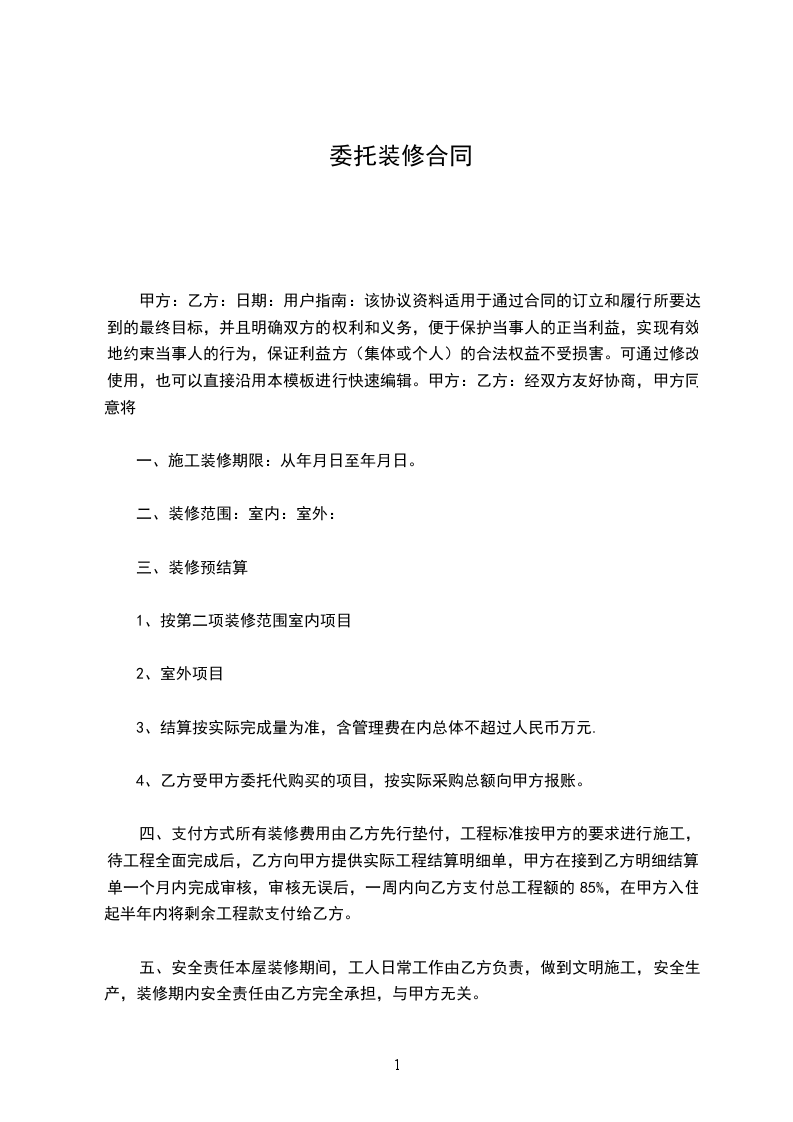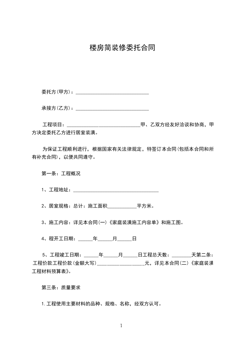 工程项目:______________________________甲、乙双方经友好洽谈和协商,甲方决定委托乙方进行居室装潢。