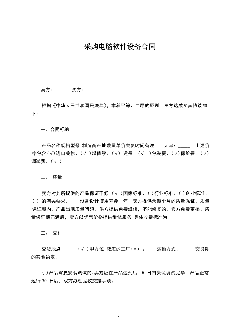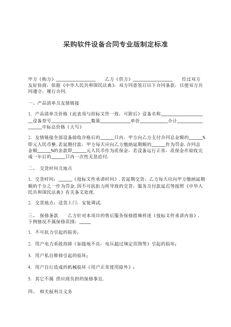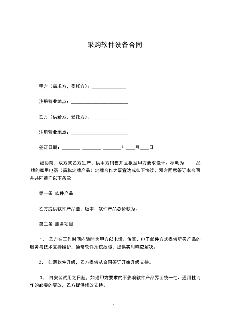 采购软件设备合同甲方(需求方,委托方):_______________