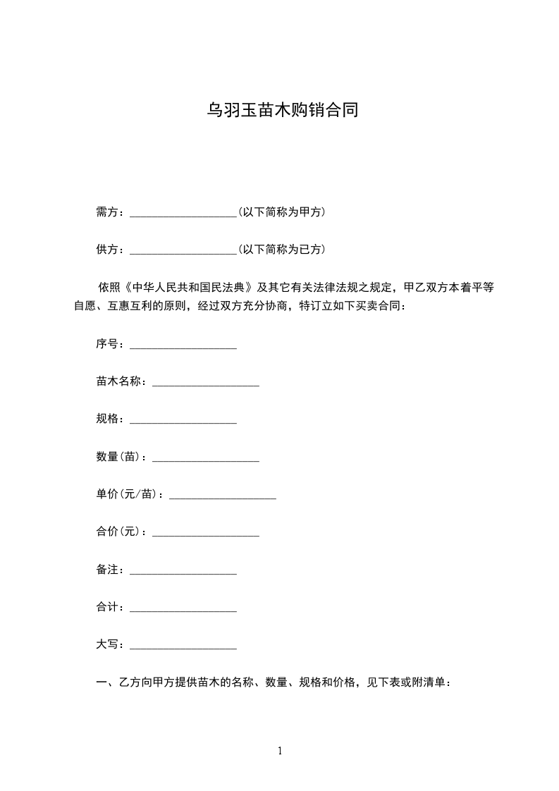 1.供苗时间、地点:乙方于______年_____月_____日至______年_____月_____日向甲方提供上述苗木。具体交货日期由甲方在上述时间段内自行确定,但须提前3天通知乙方。