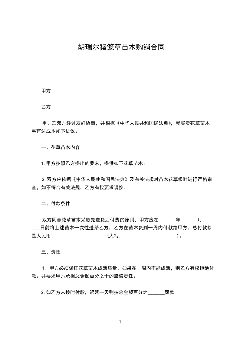 1. 甲方必须保证花草苗木成活质量,如果在一周内不能成活,则乙方有权拒绝付款。并要求甲方承担总金额百分之十的赔偿责任。