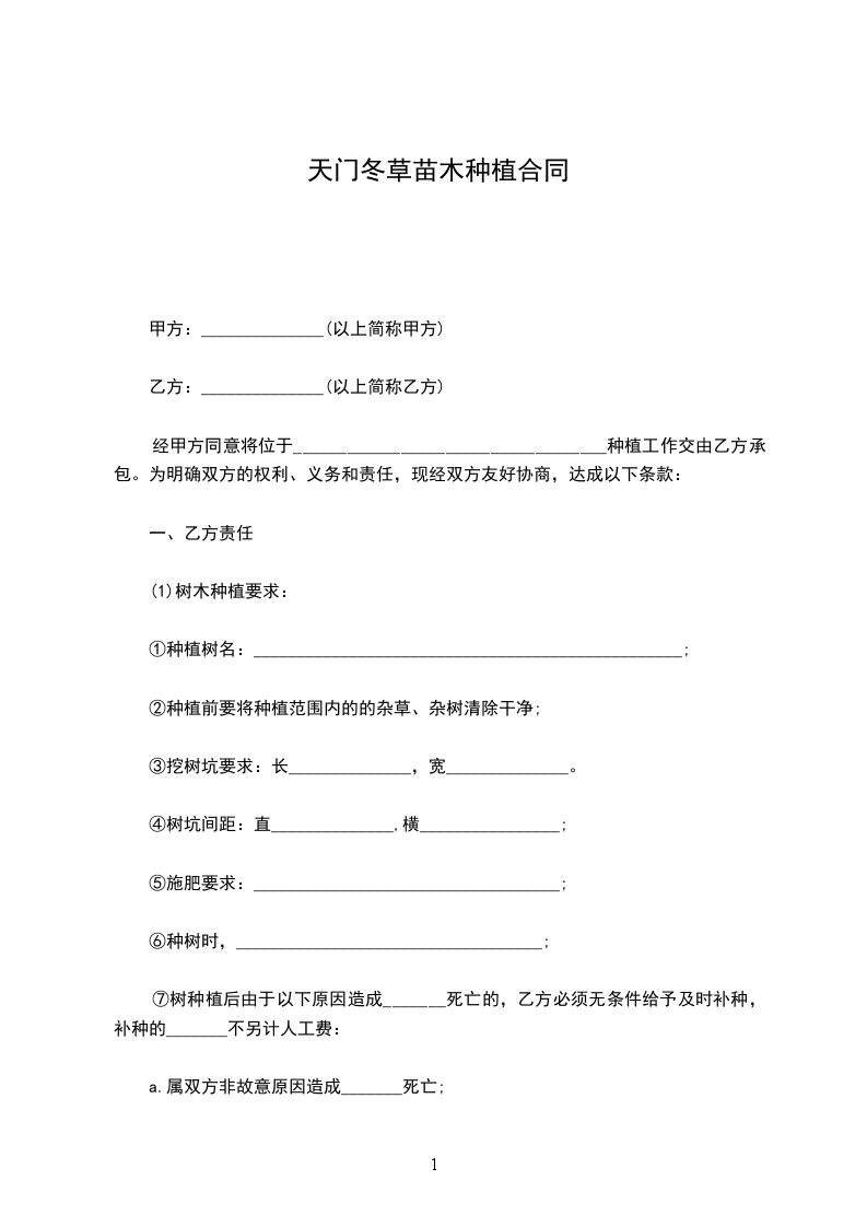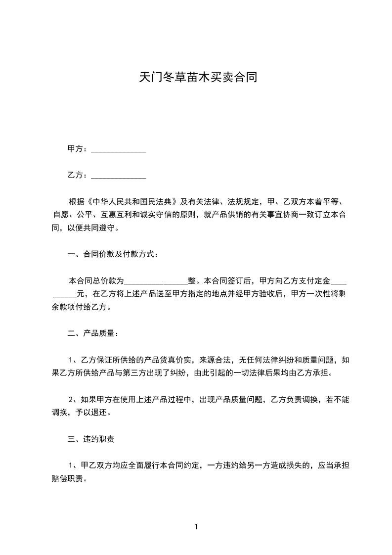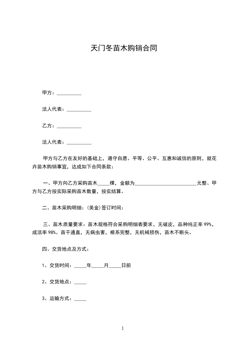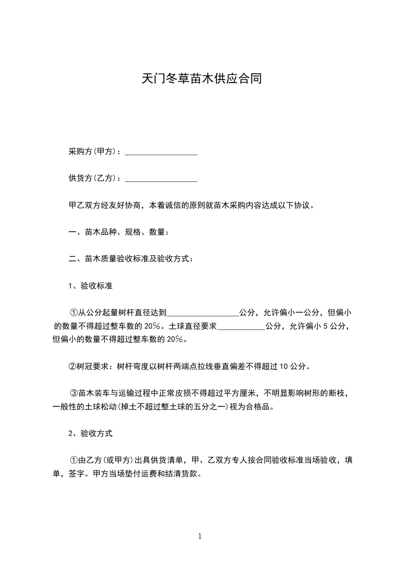 一、甲方向乙方采购苗木_____棵,金额为_________________________元整、甲方与乙方按实际采购苗木数量,按实结算。