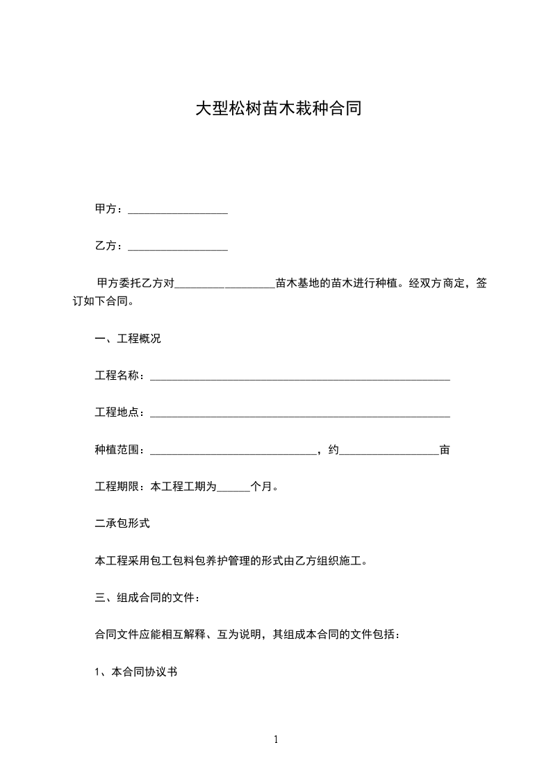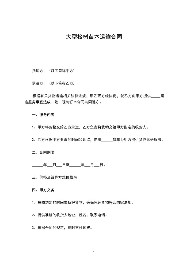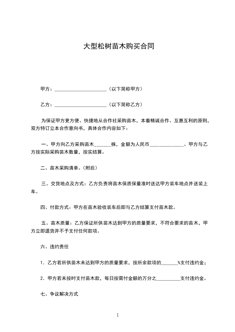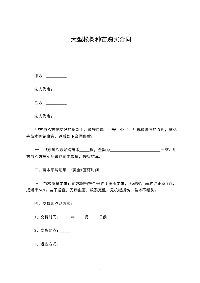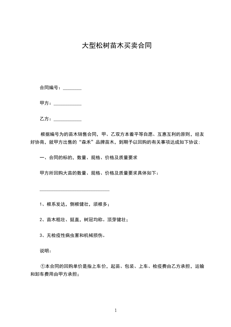 1.购销苗木品种、数量、价格、提货时间