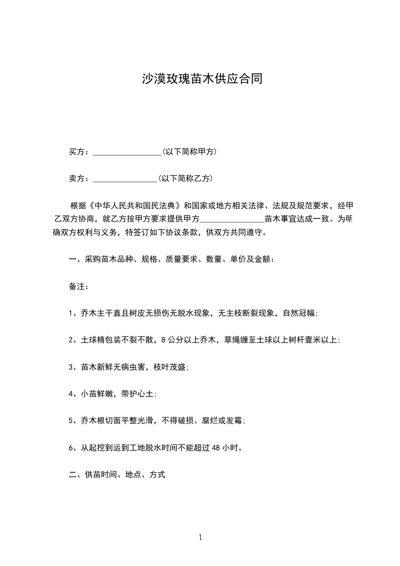 甲方因造林需要,拟购买一批苗木,经过对乙方场综合考察,甲方决定向乙方定购部分苗木,经双方共同协商,达成如下协议: