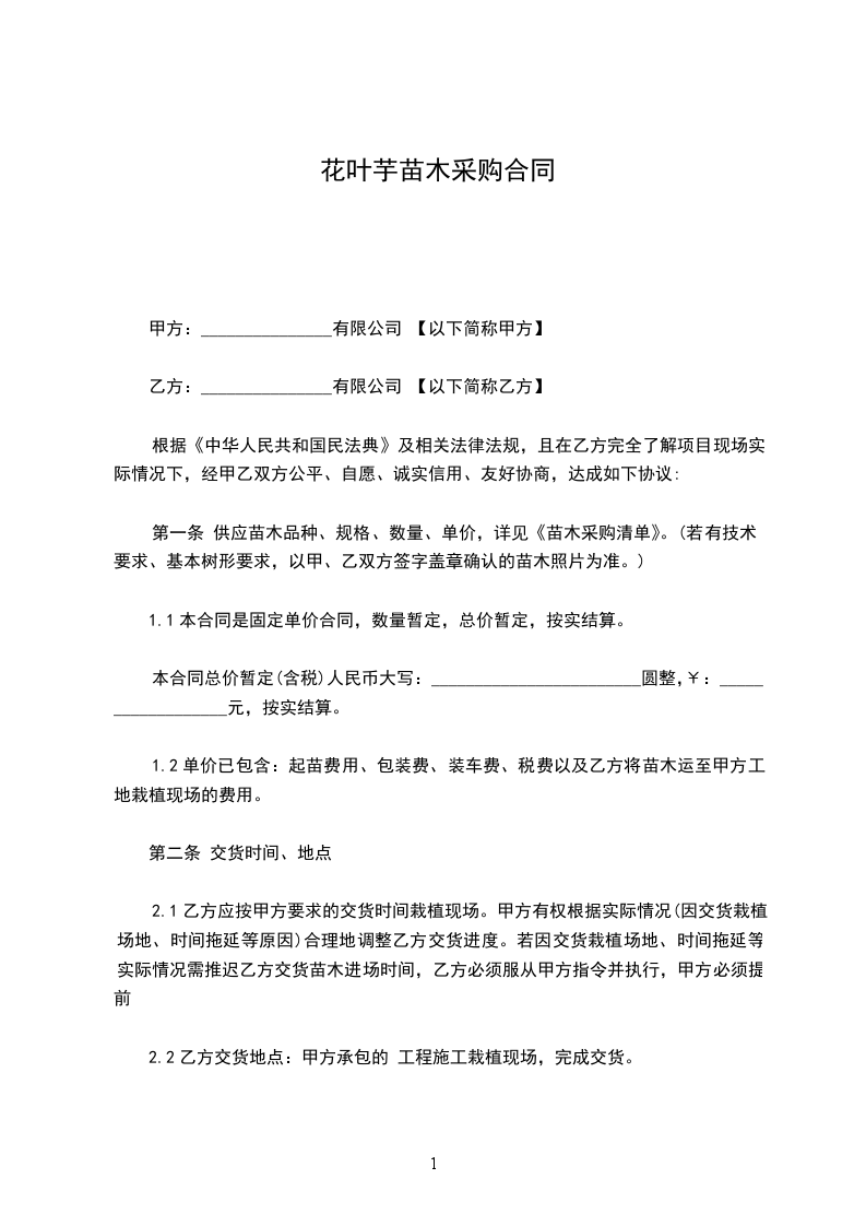 2.2乙方交货地点:甲方承包的 工程施工栽植现场,完成交货。