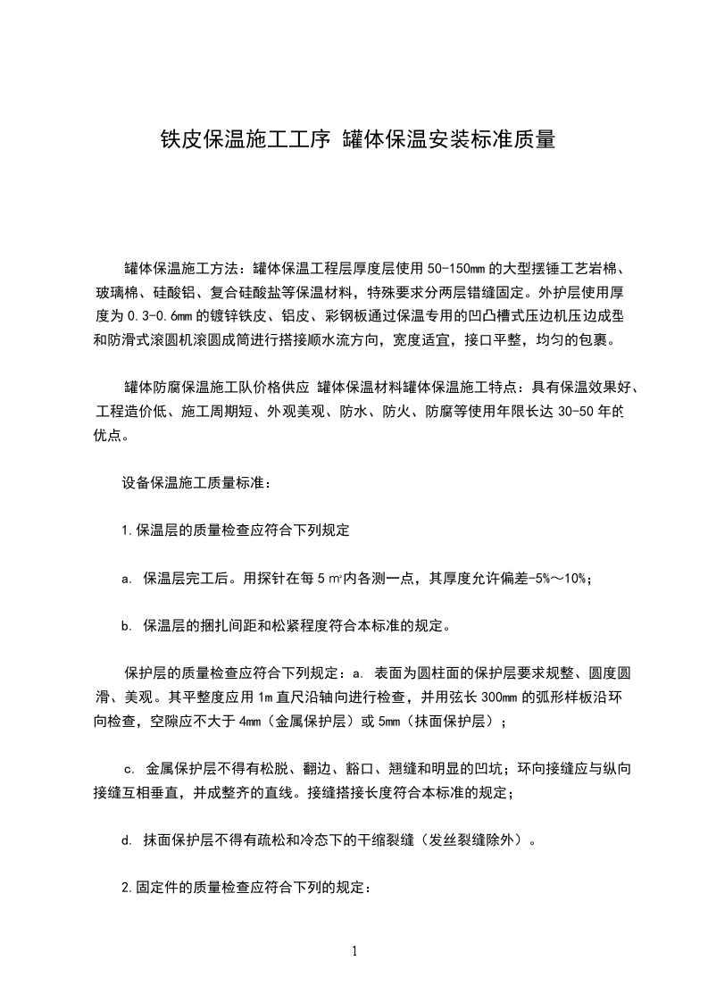 设备保温施工质量标准: