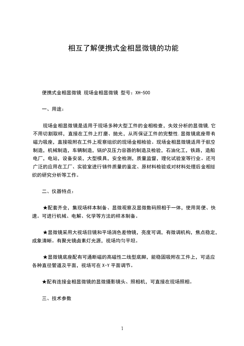 便携式金相显微镜 现场金相显微镜 型号:XH-500