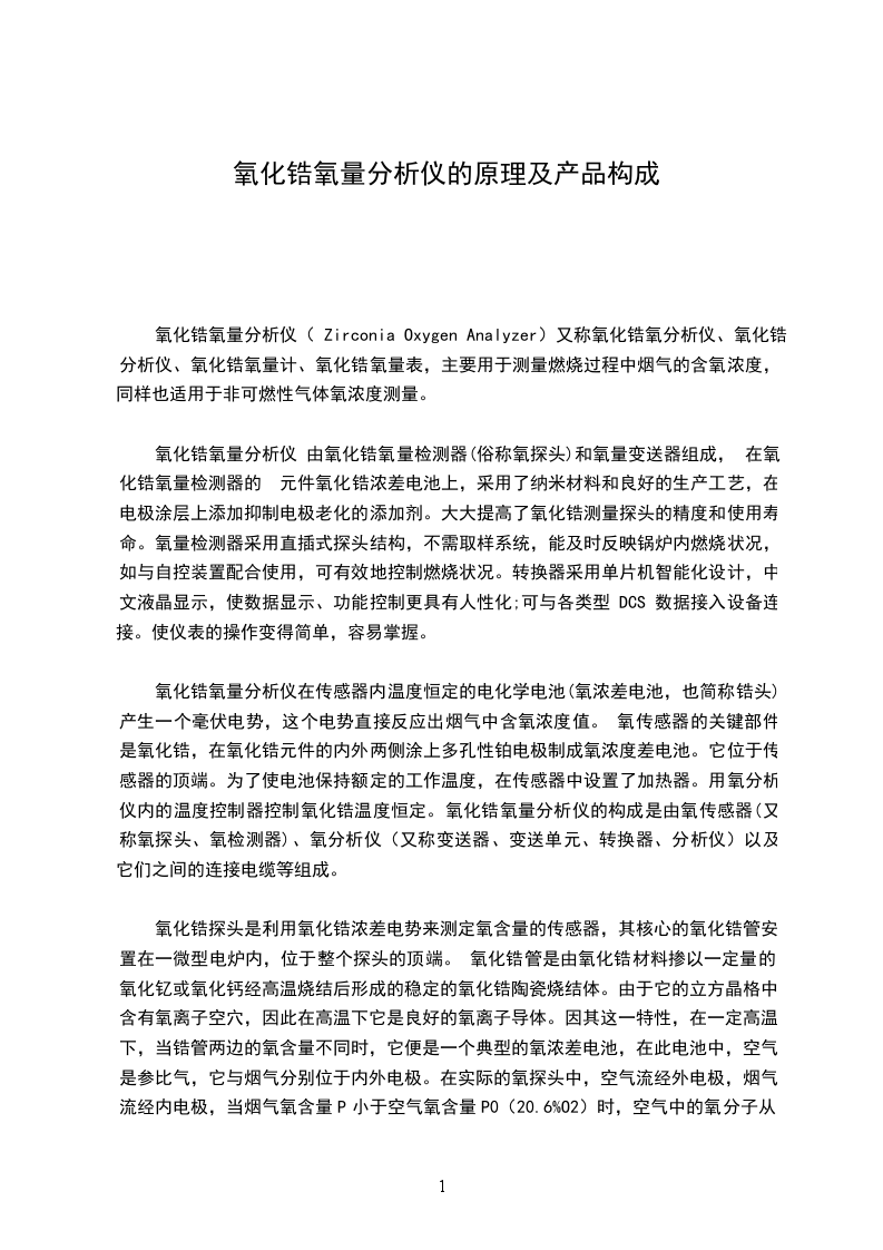 在线式微量氧分析仪采用氧化锆传感器与单片机相结合的智能化检测仪表,广泛用于空分制氮、化肥、石油化工以及生物发酵等工业生产过程中氧含量的检测。