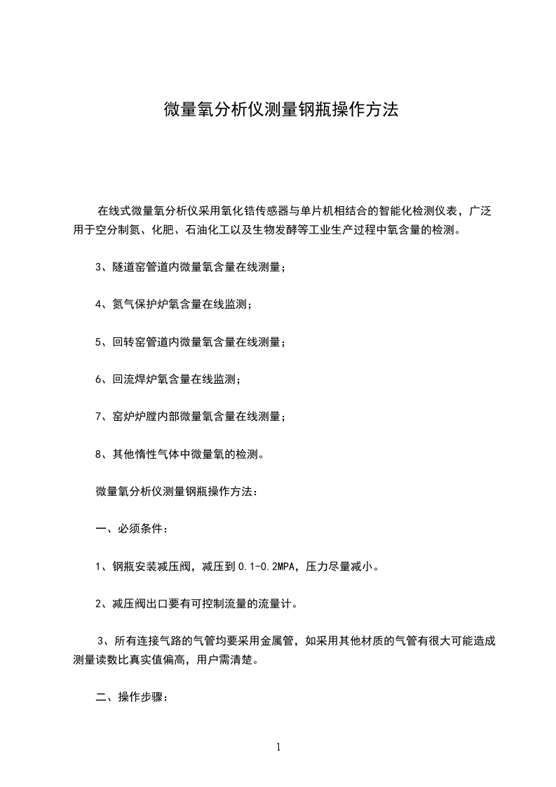 微量氧分析仪测量钢瓶操作方法: